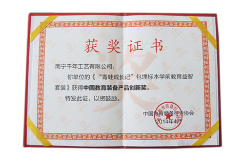 由南寧千帆教學(xué)科技有限公司設(shè)計,聯(lián)合南寧千年工藝有限公司共同研發(fā)的“千帆”品牌包埋標(biāo)本學(xué)前教育益智產(chǎn)品--《青蛙成長記》,榮獲中國教育裝備產(chǎn)品創(chuàng)新獎。產(chǎn)品在設(shè)計上大膽創(chuàng)新,引入“與孩子共享自然”的教育理念,得到評審專家的一致認可。