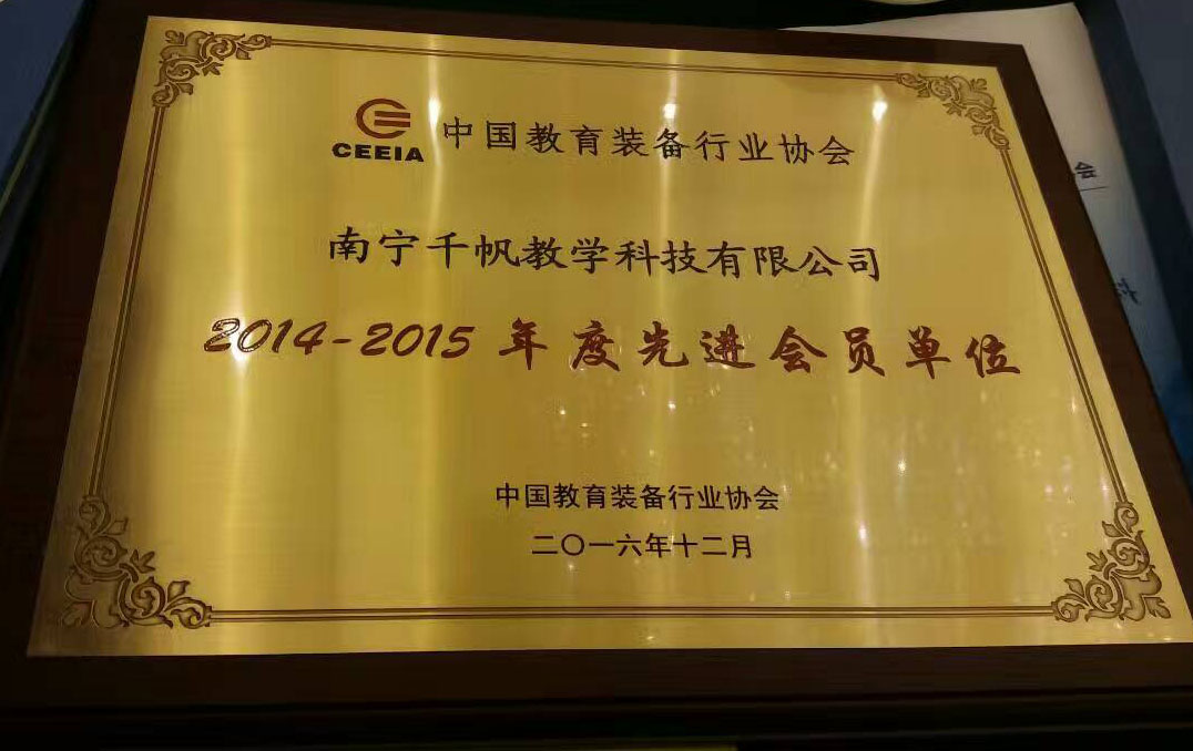 熱烈慶祝千帆公司獲得中國教育裝備行業(yè)協(xié)會2014-2015年度先進會員單位