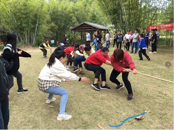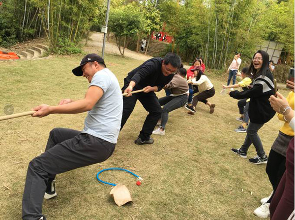 懷著激動(dòng)的心情,經(jīng)過短暫的車程后,大家于10:00左右來到本次活動(dòng)的目的地--長龍歡樂谷山莊。首先,分組進(jìn)行了豐富多彩的體育運(yùn)動(dòng),有六人單腳跳、運(yùn)輸氣球、拔河等項(xiàng)目。在運(yùn)動(dòng)中,大家團(tuán)結(jié)協(xié)作、歡聲笑語,平日里高強(qiáng)度的工作壓力被釋放一空;顒(dòng)拉近了同事之間的距離,更增強(qiáng)了集體榮譽(yù)感。