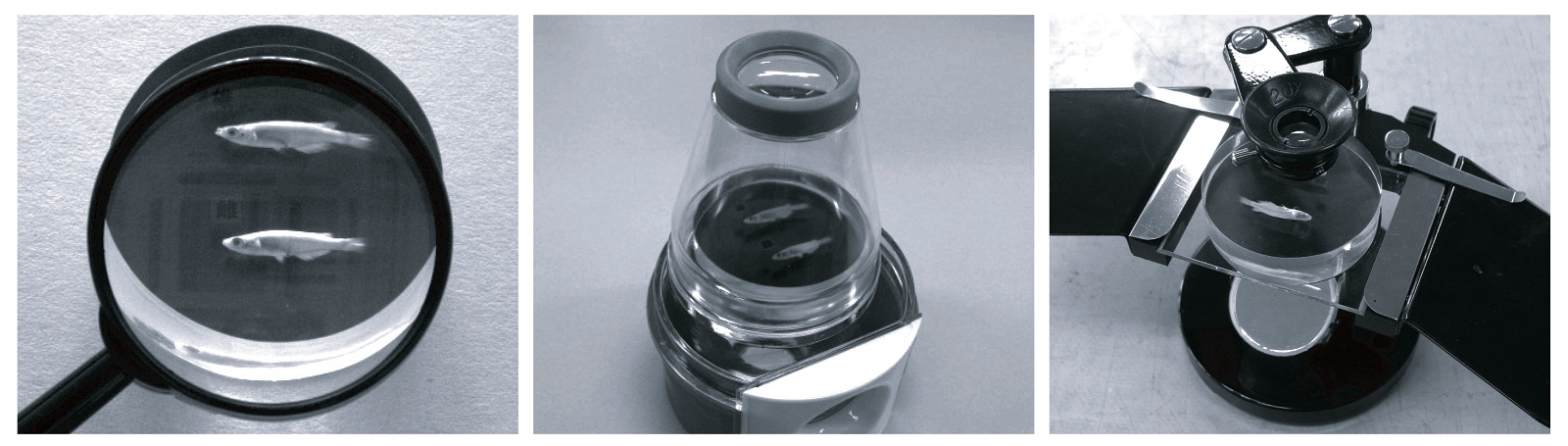 雌雄青鳉魚對比 顯微觀察標(biāo)本